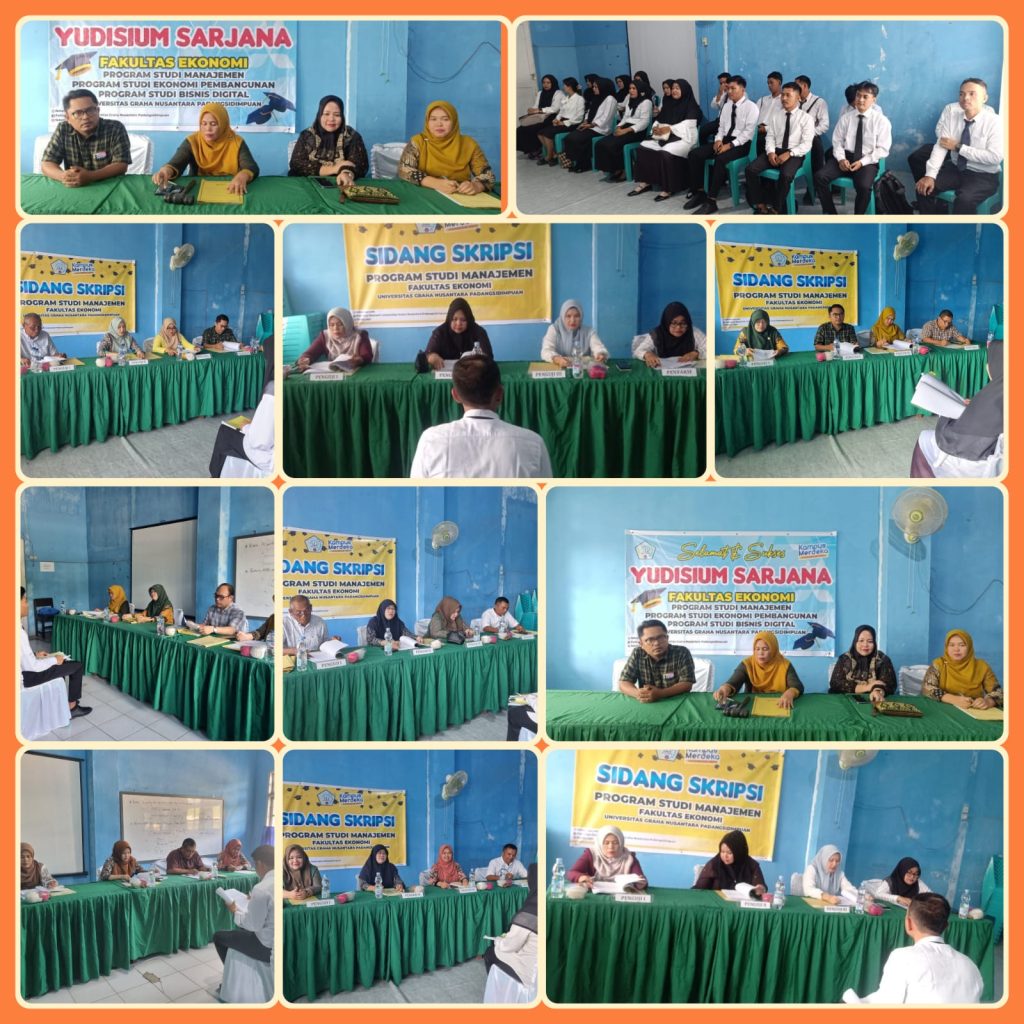 Sebanyak 18 mahasiswa/i Program Studi Manajemen Fakultas Ekonomi UGNP melaksanakan sidang skripsi selama 3 hari pada hari Senin – Rabu tgl. 26-28 Mei 2025 serta pelaksanaan Yudisium pada tgl. 28 Mei 2025.
